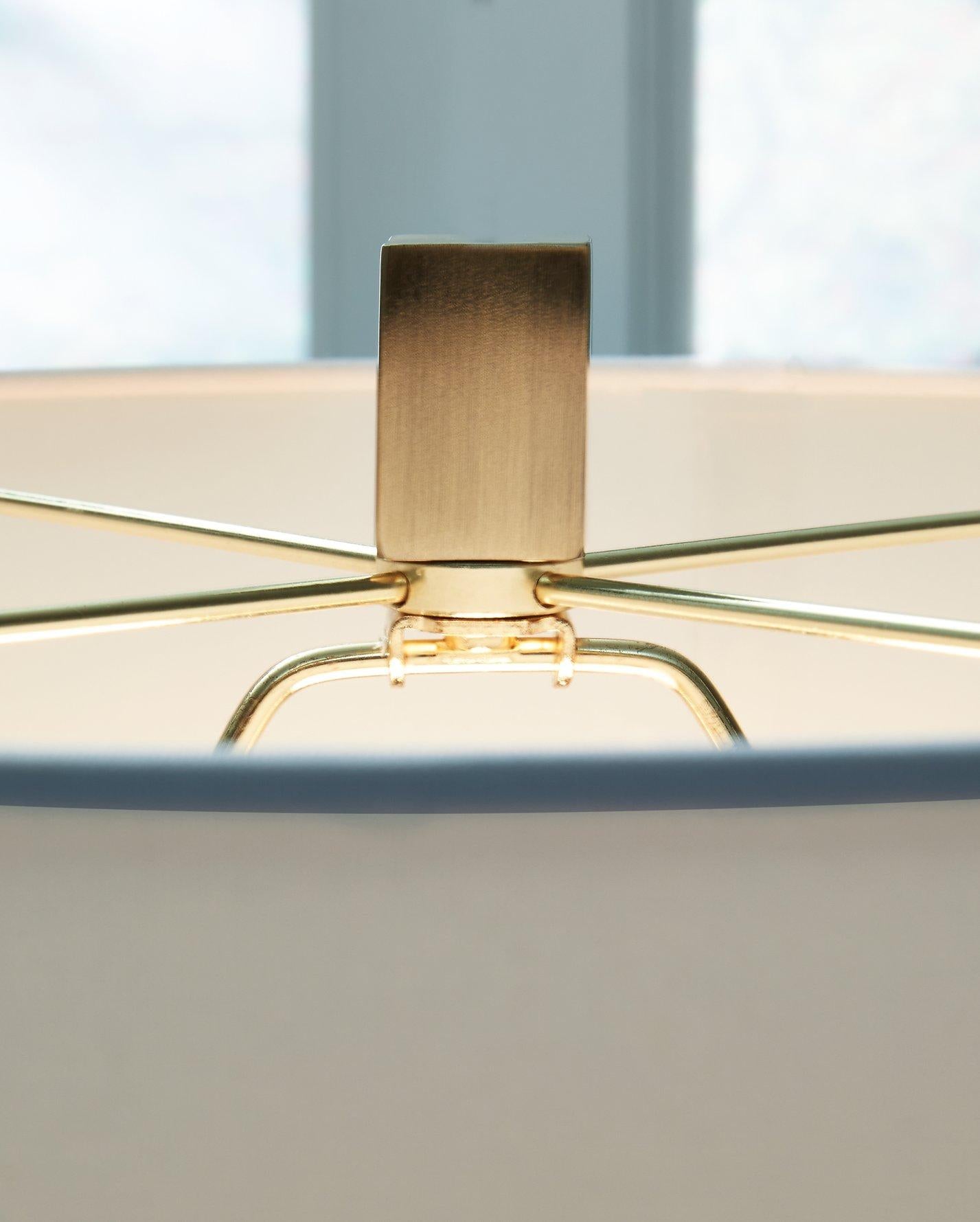 Crystal vision. A clear choice for those with a modern sensibility, this crystal table lamp masters the art of understated elegance. Touches of goldtone metal and a crisp fabric shade perfect the aesthetic.